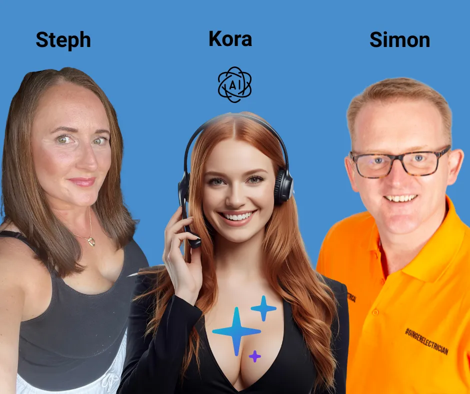 Kora is our backup AI Agent (When Simon and Steph are busy on jobs - Or out of hours).